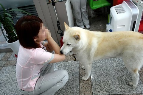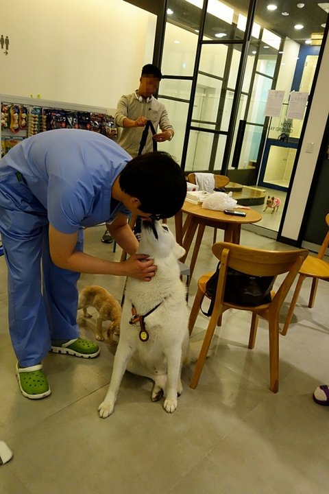 동물병원 놀러와서 간식 얻어먹고 있어요.ㅎㅎ