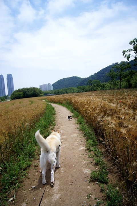 보리밭 가운데서 찍어봤어요. 표정이 밝아요