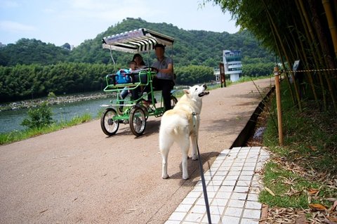 동생이 와서 같이 차타고 붕붕 산책 가고 있어요.