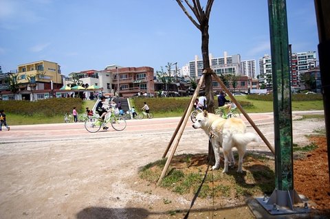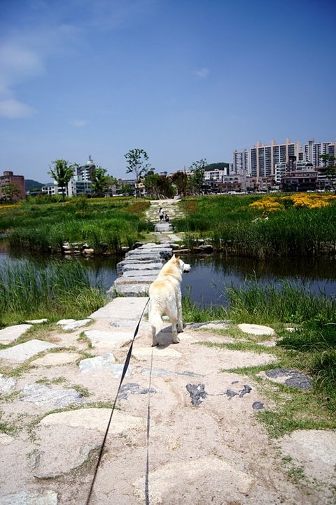 오잉.. 징검다리 건너다가 모에를 만났어요.. 안녕 모에야 킁킁