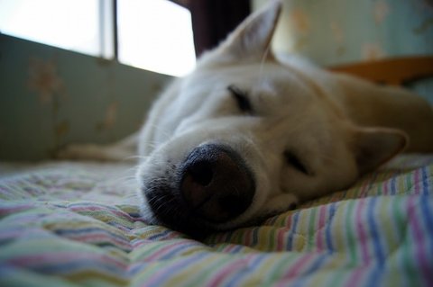 기분이 좋은 심바. 산책을 바라면서 침대 위에서 웃고 있네요