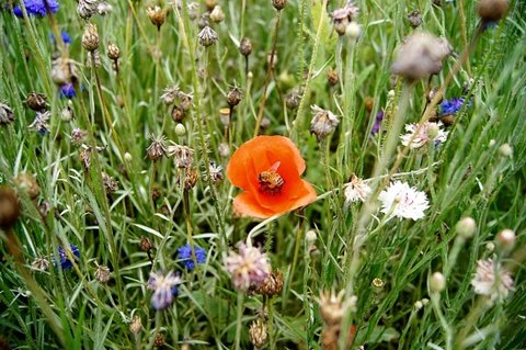 시들 시들한 꽃 위로 벌들이 붕붕 날아다녀요.