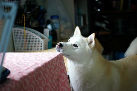 킁킁 간식 있는거 알아요 주세요~하고 있어요.