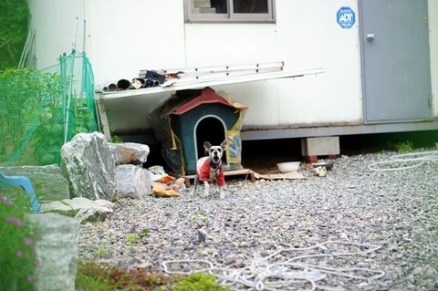 같이 놀고 싶은데 도망가서 쳐다보고 있어요.