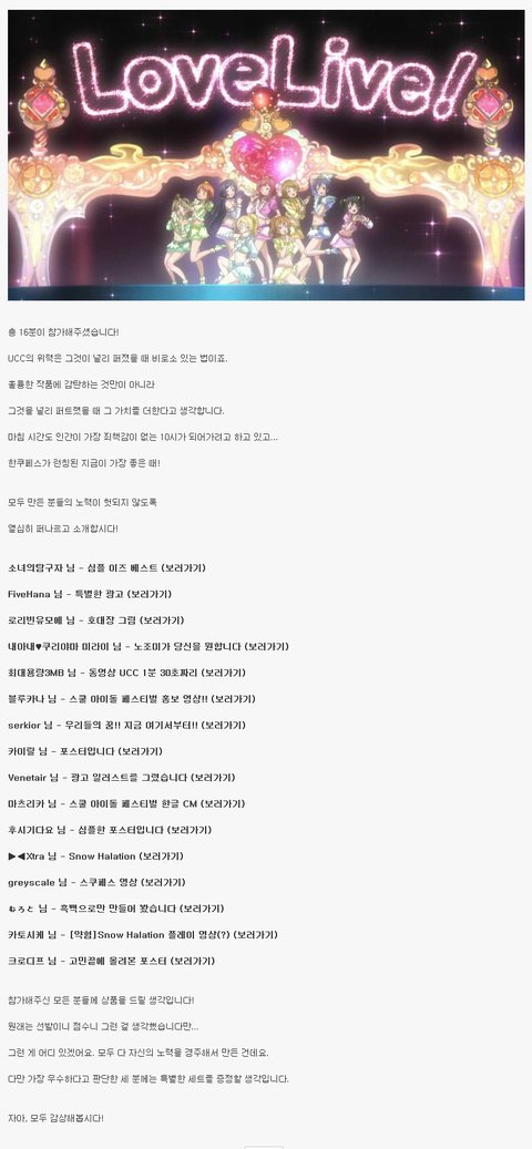이걸 러브라이브 국내 펜들이 널리 알려야 한다며 시작된