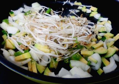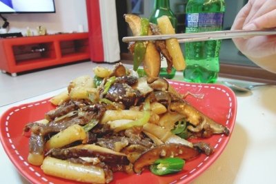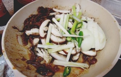 버섯이랑 야채 일정크기로 썰어서 볶은다음에