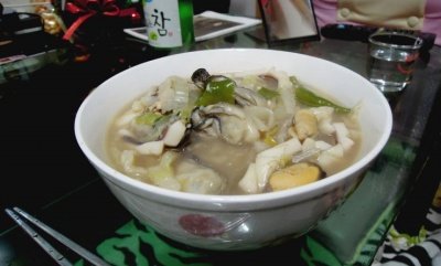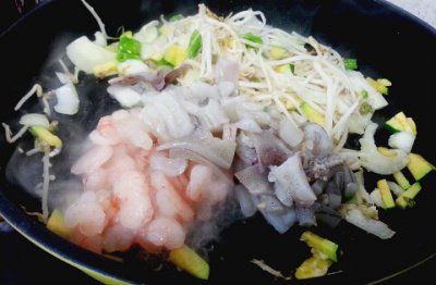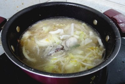 육수투하하고 해산물넣고 굴소스좀넣고 팔팔끓이고