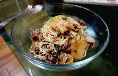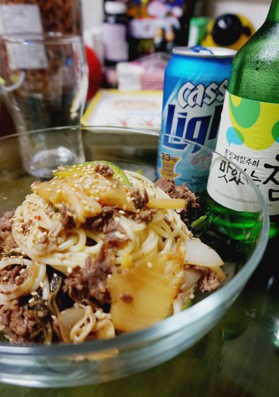 소불고기와 김치와 파스타면의 콜라보?ㅋㅋㅋㅋㅋㅋㅋ