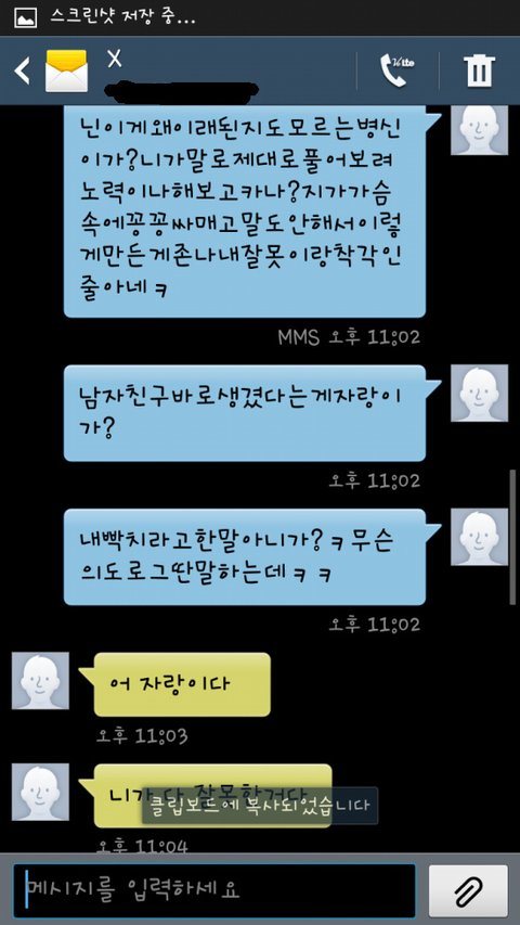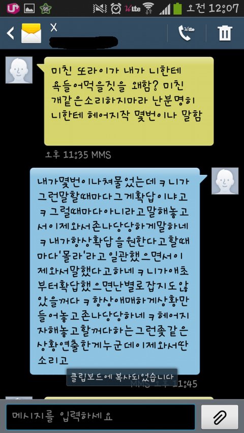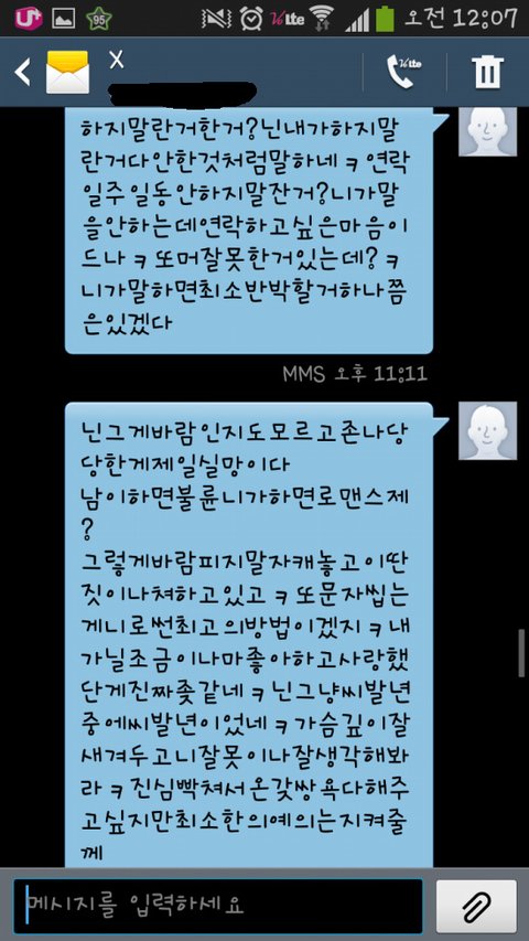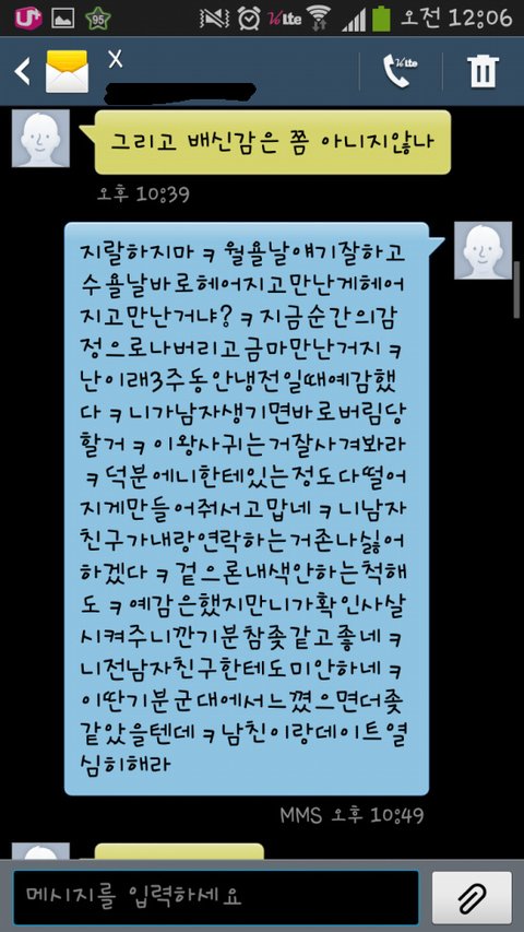그러다 오늘 문자를 하는데 뜬금없이 남자친구를 수요일.. 그러니깐 나랑 연락하지 말자고