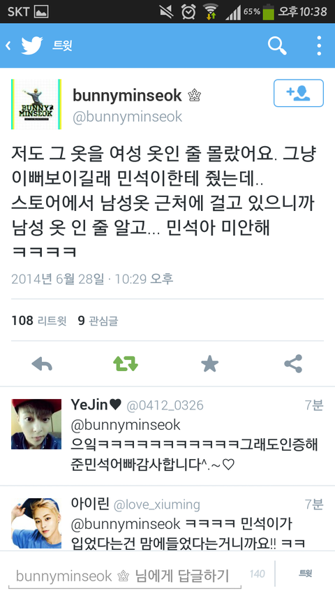민석이ㅋㅋㅋㅋ오늘 서폿인증한 거 여성용이넼ㅋㅋㅋㅋ