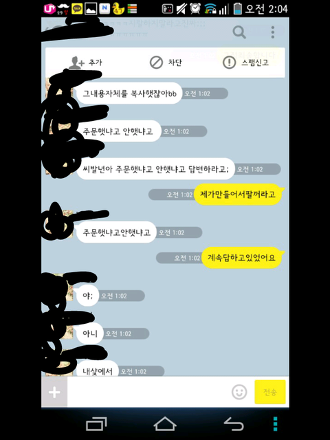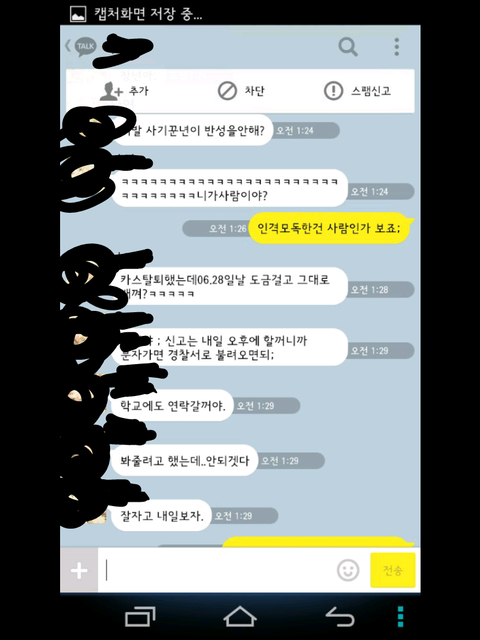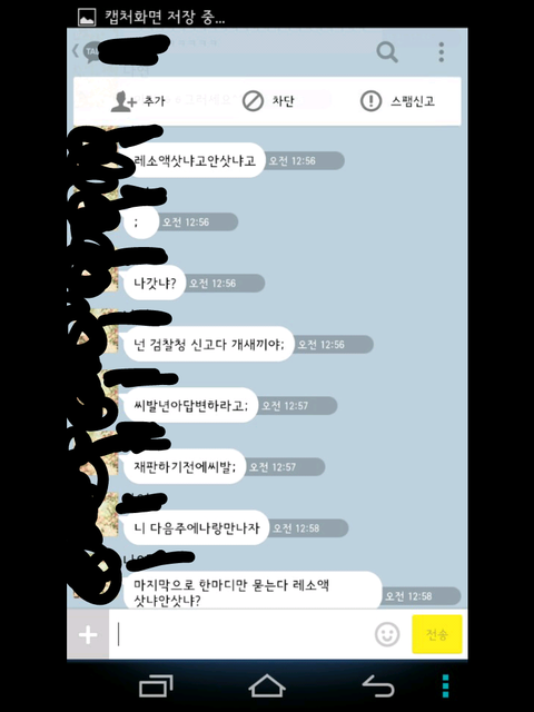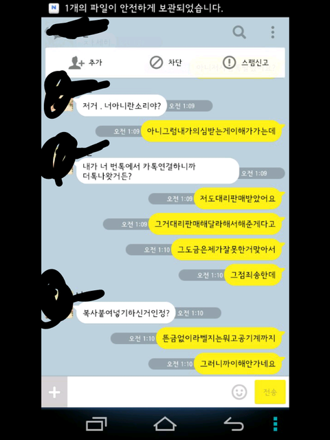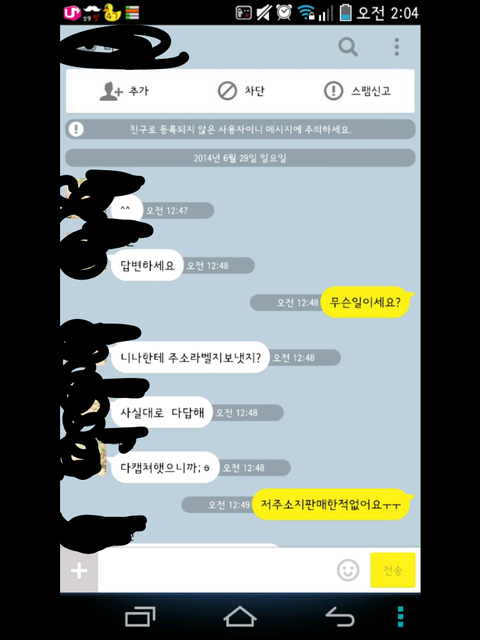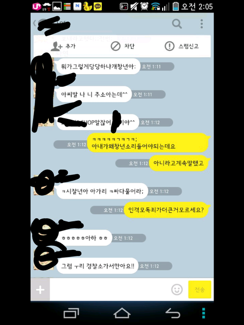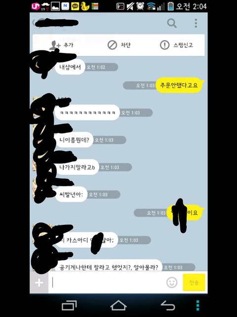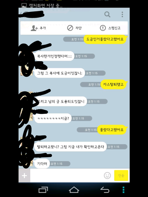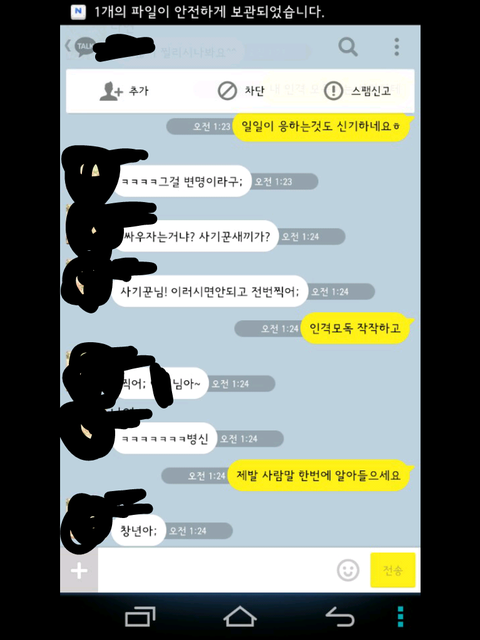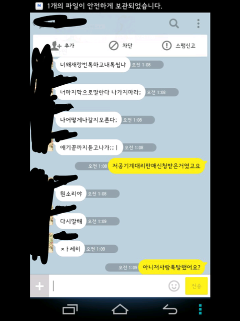그런데 한참 있다가 어느 한 분에게 시비가 걸려서 톡을 했는데 그 내용 보여 드리겠습니다.