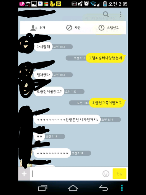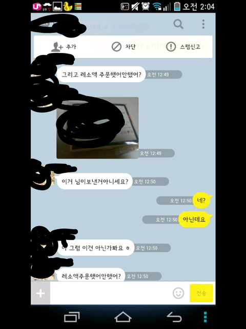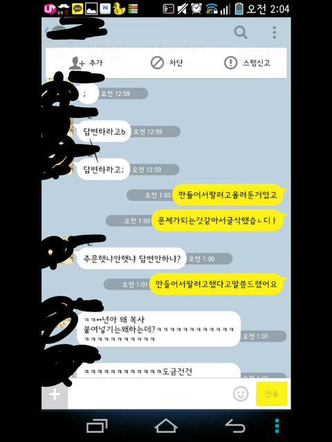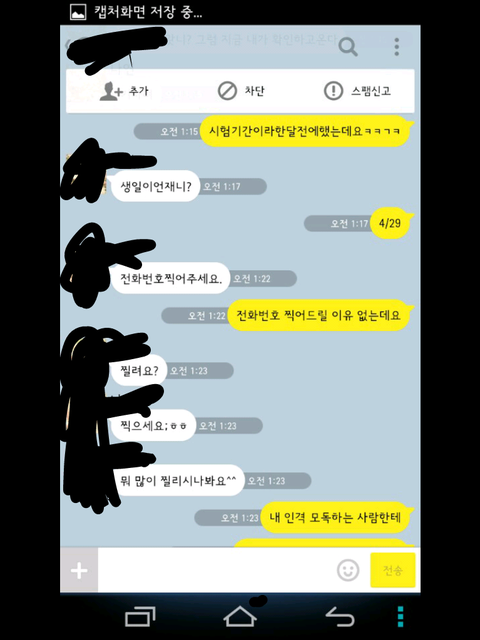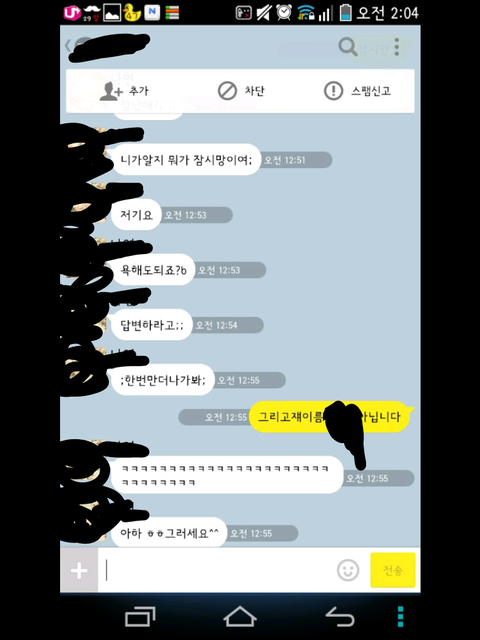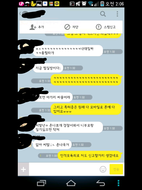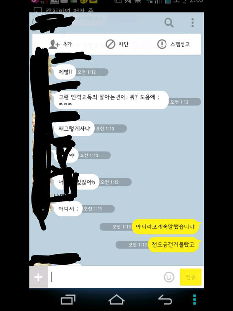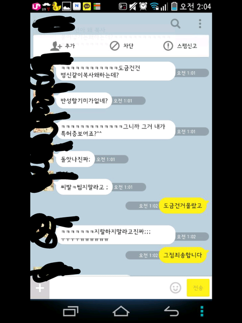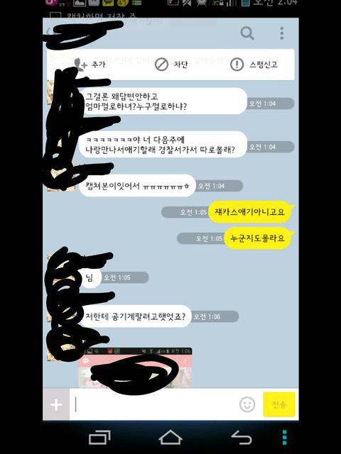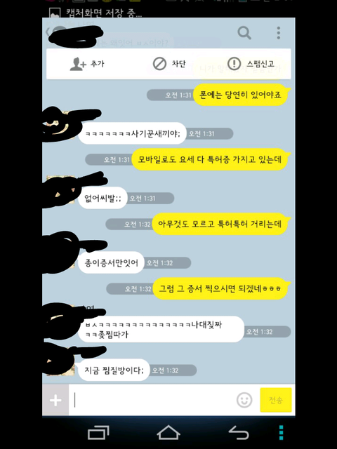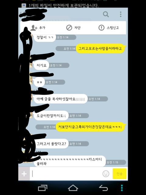 그런데 한참 있다가 어느 한 분에게 시비가 걸려서 톡을 했는데 그 내용 보여 드리겠습니다.