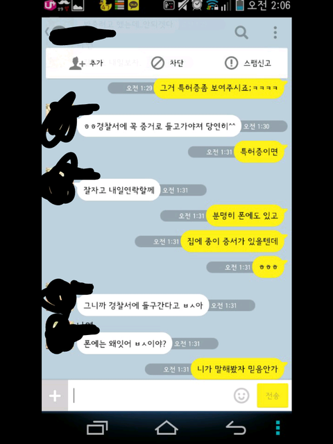 저는 최대한 말을 다 해드렸는데도 불구하고 그분은 계속 시비조, 반말, 인격 모독이 되는 말을 했고 결국 자기가 특허냈다면서 경찰서를 간다고, 자기 주변에 경찰서 인맥이 많다고 말을 하였습니다.