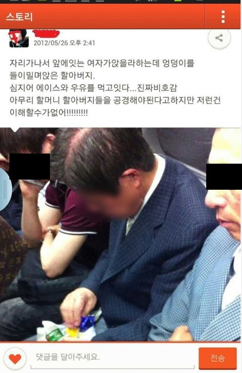 에이스와 우유를 드시는 모습이 더 마음이 아프다.. 저 할아버지가 뭘 그렇게 잘못하셨다고 이렇게 사진까지 찍혀가면서 저 여자한테 욕을 들어야 하는지 모르겠네 할아버지가 욕을 하면서 비키라고 밀어낸것도 아니고 입장바꿔 자기 아버지나 할아버지가 저런 상황이라면 가슴 찢어질텐데 저런 사진 올리면서 욕하는거 보면 부모의 사랑을 잘 못받아서 이해심도 없고 생각도 미숙한 사람이 아닌가 생각된다