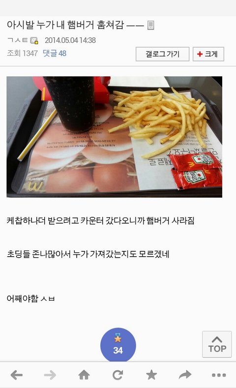 남의 햄버거 훔쳐가는 사람도 있나보군요