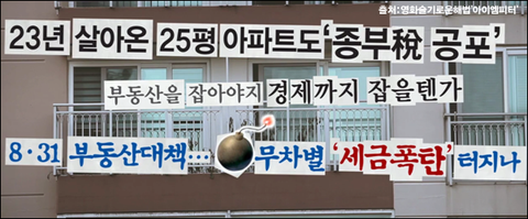 참여정부 시절, 부동산을 안정시키기 위해 '8.31 부동산 대책'이 나왔습니다. 참여정부의 부동산 정책이 나오자 조중동은 '무차별 세금 폭탄'. '종부세 공포', '경제 대란' 등의 용어를 거침없이 사용하면서 공격에 나섰습니다.