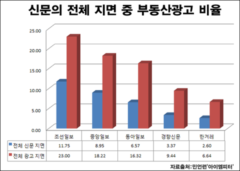 같은 기간 조선일보의 부동산 광고는 (전면과 양면 포함)는 18개였는데, 경향신문과 한겨레는 5개에 불과했습니다.