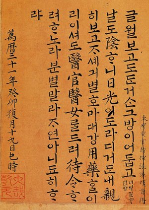 원균을 사랑한 한 왕이 자신의 딸이 아프자 약을 보내면서 쓴 안부편지...
