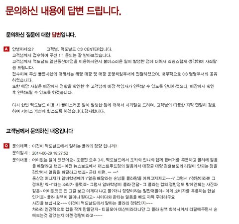 어이없는 일이 있었어요~ 6월29일 오후 3시, 맥도날드에서 조카와 언니와 함께 햄버거를 주문하고 콜라에 얼음을 빼달라고 했죠~ 예전 뉴스보도에서 패스트푸드점의 얼음에서 대장균 대량 검출보도와 리필이 안되는 점을 감안해서 얼음을 빼달라고 했죠~ 근데 이런, ㅡ ㅡ^