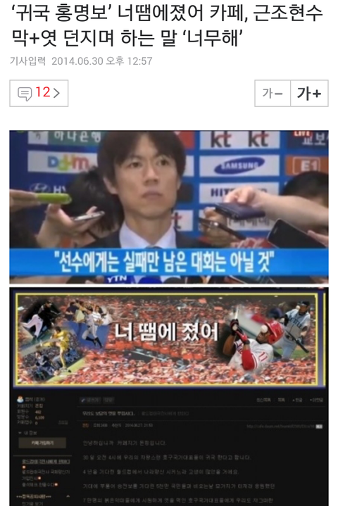 이번 월드컵에서 감독이 어떤실수를 했는지,어떤 부족함을가진 사람인지 나도 잘봤습니다 선수들의 부족함도 봤고 16강은 고사하고 1승도 못하고 참패를 당한 대한민국의 추락한 자존심이란....가슴이 아프죠 그런데,아무리 그래도 몸도 마음도 힘들게 뛰었을 선수들의 귀국현장에서 -16강도 못간 니들따위 엿이나 처잡숴라. 라는 의미를 담은 호박엿....과 저딴 가슴에 상처를 주는 현수막을 들고 카메라앞에서 모욕을 주다니 어이가 없네요 오히려 선수들이 더 마음이아팠을텐데 지들도 꼴에 한국인이라고 자존심좀 깎였다는 이유만으로 저런행동을 하는게 정상입니까?미친놈들같아서 제가 다 화가나네요 지들한테 뛰라면 뛰지도 못할 인간들이 입만살아서 왜저런답니까 선수들 불쌍하게ㅠ.ㅠ제발 개념좀 챙기고 사세요 니들은 현실에서 얼마나 처신 잘하고살길래 저렇게 하십니까 참 미개합니다 대한민국 사람들 츠츠~