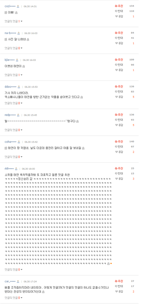 심지어 이젠 사람들이 태혐에 대한 관심도 사라져서 댓글도 50개정도밖에 안달리는