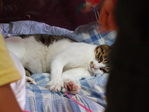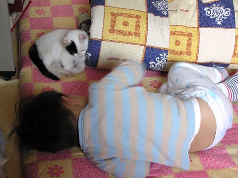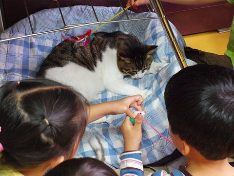 아가들하고 놀아주려니 피곤하다냥 어깨좀 주물러봐봐