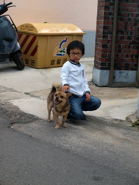 산군이 낯선 사람들을 좋아라 하지 않지만, 아이들을 좋아하는 이유는 단 하나! 지훈군 때문입니다. 꼬맹이들은 괜찮다고 여기는 것 같아요. ㅎㅎ