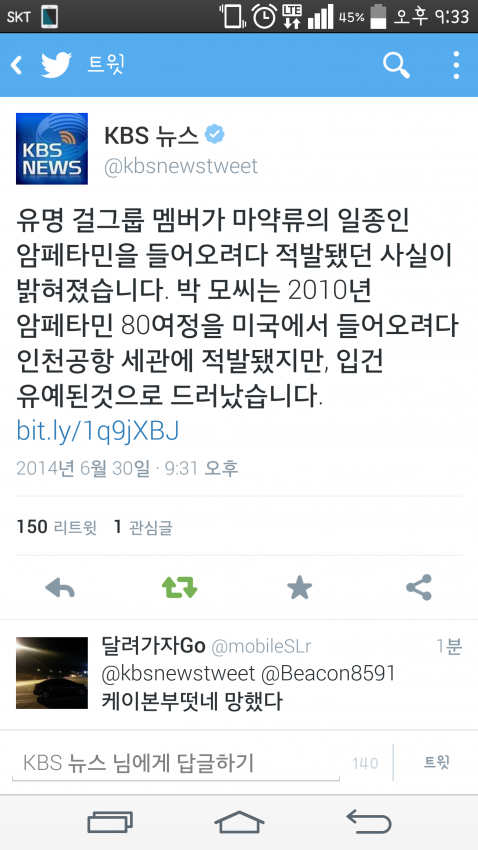KB/S 기자 트윗떳다. 확인사살