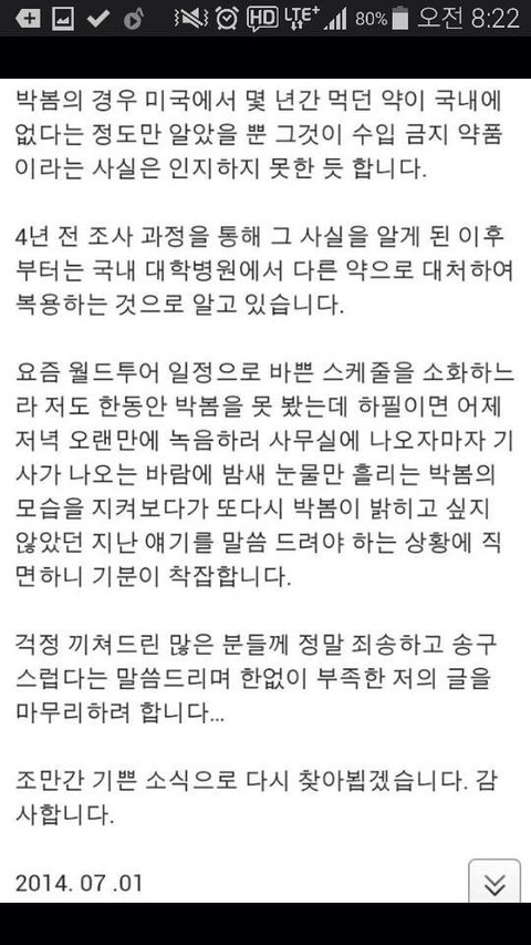 양현석사장 해명글올려요