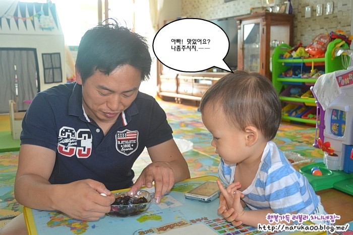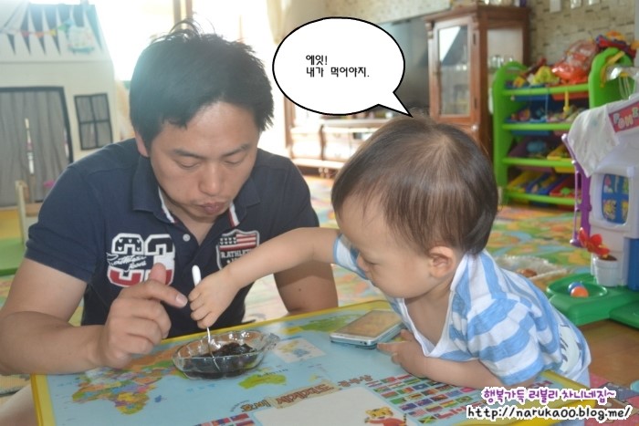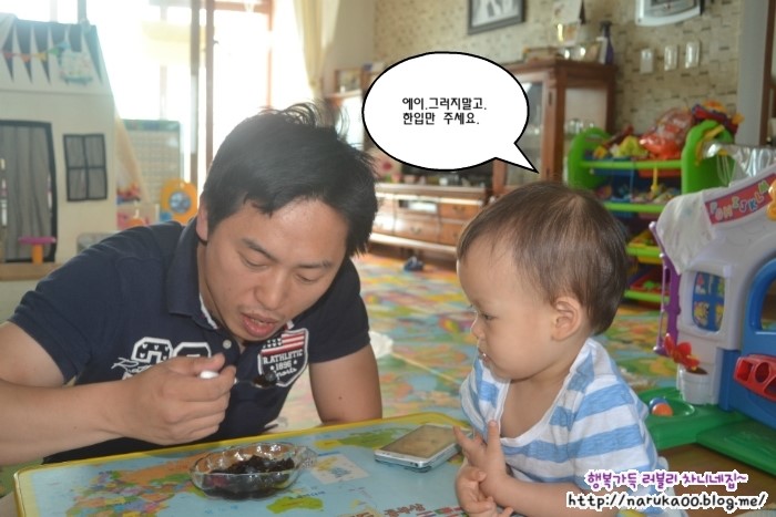 끈질기게 집착하면서 한입 먹어보려고 눈빛을 날리지만 아빠는 아랑곳하지않는답니다.