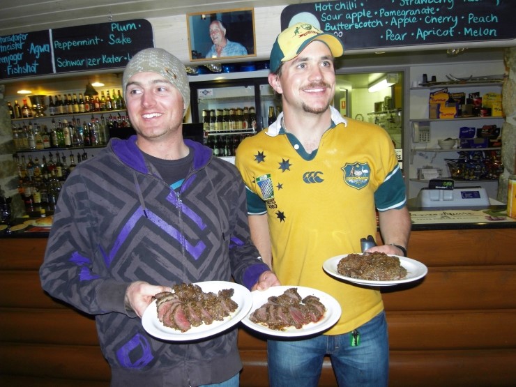 (호주팀 럭키와 잭, 캥거루 스테이크를 서빙하고 있다.)