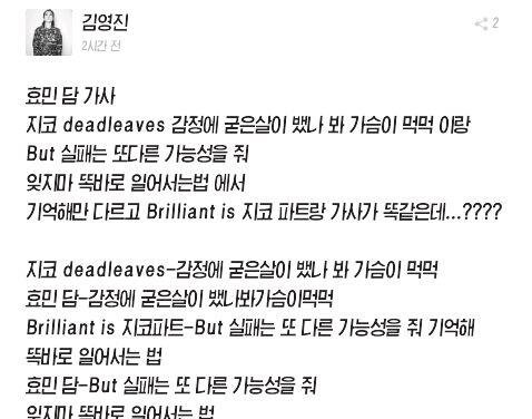 지호오빠가 열심히 작사했을텐데 뭔가요 진짜