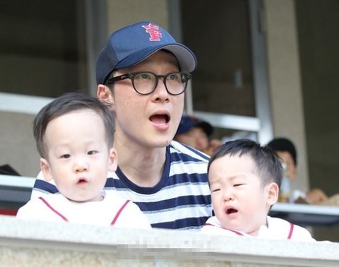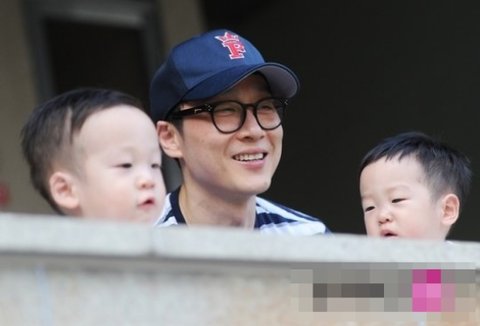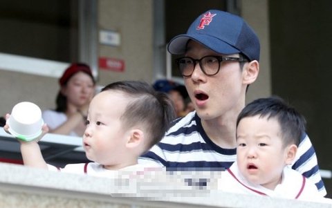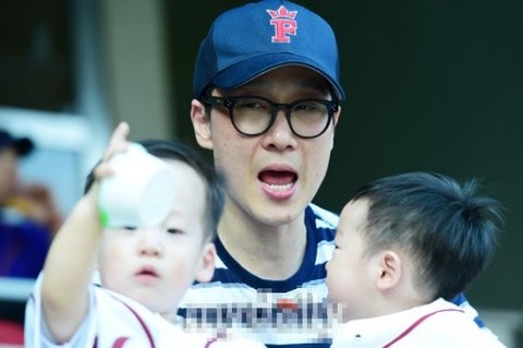 야구광 이휘재가 쌍둥이들과 함께 야구를 보러갔음ㅋㅋ