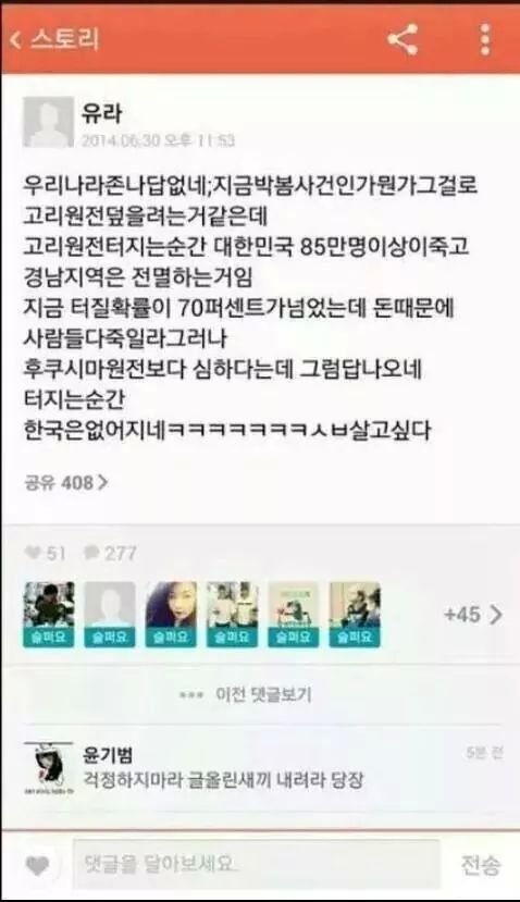 야ㅋㅋㅋ뭔 원전터지면 울나라반이죽어
