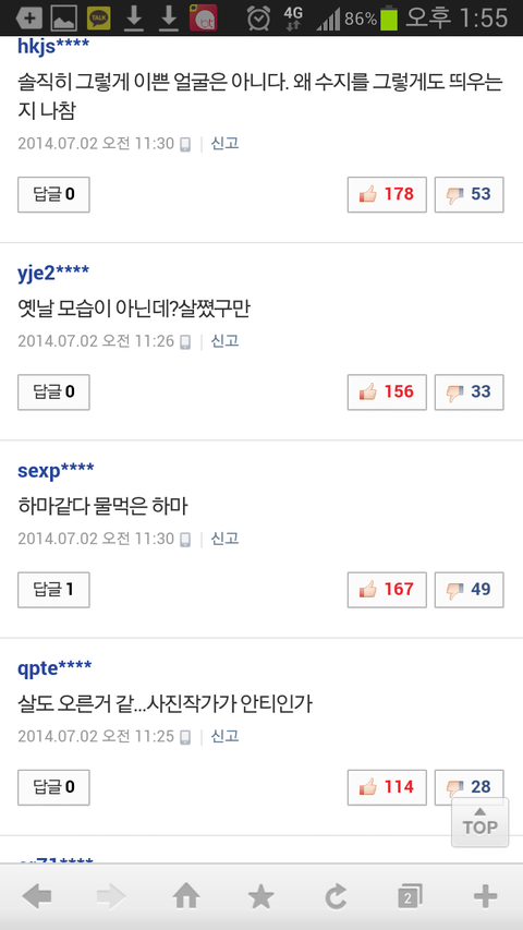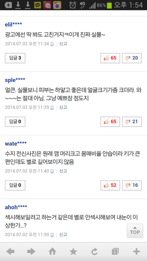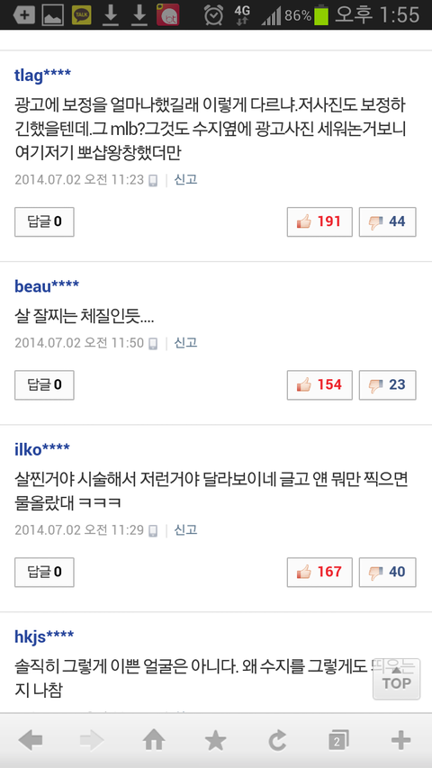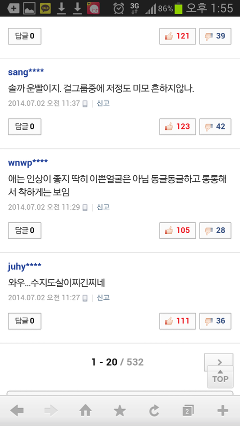 수지한테 왜 그래; 인기 많으니까 열폭들은ㅋㅋㅋㅋ 걸그룹 중에 저 외모가 흔하냐ㅋㅋㅋㅋㅋㅋㅋㅋㅋㅋㅋ 흔했으면 그 흔하게 생긴 애들 다 떴겠네 ㅉㅉ 헐 이 글이 톡선이 될 줄은 몰랐넹 듣보잡 걸그룹 중에 예쁜 애들 데려와서 수지 대신에 광고에 써봐라 과연 얼마나 예쁘게 나올지ㅎㅎ 니들이 아무리 수지 흔하다 별로다 욕해도 광고 매출이 말해주잖니 수지가 왜 개인 cf 점유 1위겠니 그만큼 쓰는 회사마다 매출이 몇배씩 뛰잖아ㅋㅋㅋ 수지가 흔하다고? 수지처럼 생긴 애들 길거리에서 다섯명만 데려와도 인정해준다 그리고 이건 유명한데 아육대에서 남자 아이돌들 수지 지나가니까 다 헤벌쭉하고 쳐다보는 짤ㅋㅋㅋ 모르냐 솔직히 수지 예뻐 그리고 예쁘다고 열거 되는 아이돌 중에 수지가 제일 자연스럽게 예쁨 제발 인정할 건 하자 니네 말대로 수지가 그렇게 흔하면 왜 대형 기획사에 수지처럼 생긴 애들이 한명도 없고 뽑지도 않지!? 왜 수지st 애들이 길거리에 많은데 정작 캐스팅 되는 애들이 없냐고ㅋㅋㅋ 그리고 수지가 운빨이라고? 그렇게 치면 운빨인 애들 아이돌에 조카 많아 아 물론 듣보 걸그룹 중에 예쁜 애들 많지 그러나 수지 얼굴이 흔한 건 아니지ㅎㅎ 니들 생각엔 듣보 걸그룹 중에서도 예쁜 애들 많고 수지가 흔해?ㅎㅎ 니들이 생각헀을 때 듣보 아이돌 중에 수지 닮은 꼴 있냐?ㅋㅋㅋ 하여간 어떻게 해서든지 깎아내리려는 심보! 대단합니다ㅎㅎ 참고로 난 여자고 네판에서 허구한 날 외모로 까이는 수지를 보며 안타까워서 쓴 글ㅎㅎ 열폭 지켜보는 것도 지친다 니들이 인정 안해도 무의식 중에 수지 외모를 인정하고 있다는 건, 다른 예쁜 아이돌들 글에는 그 아이돌 얘기 밖에 없는데 수지 글에는 굳이 배우 끌어와서 비교하는 댓글이 넘친다는 거ㅎㅎ 그게 열폭의 증거다 이게 찬반대결이 될 줄은 몰랐네 100여분이 저에게 찬성을 해주셨네요 감사합니다^^~