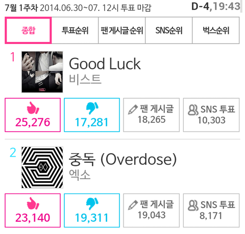 이쁜 엑팬들아 투표 좀 하자~~~~