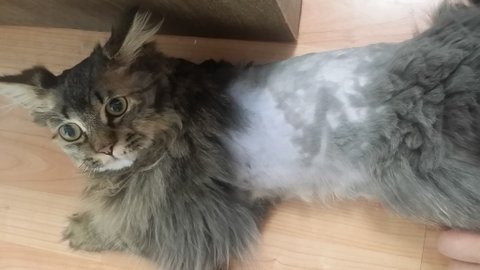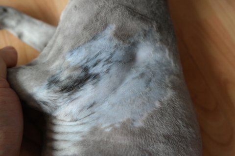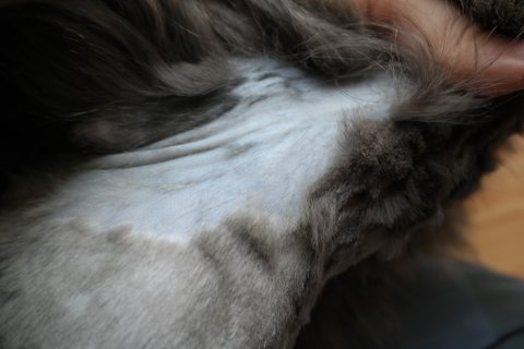 그랬더니 털이 우수수 빠져 버리더군요. 깍은 부위와 빠진 부위 구분이 가시나요?