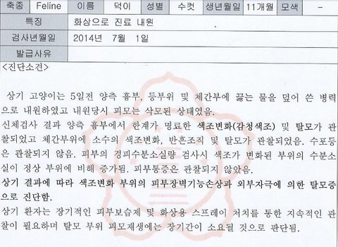 화상치료가 원래 고가에다 애완동물은 의료보험 적용대상이 아니다보니,