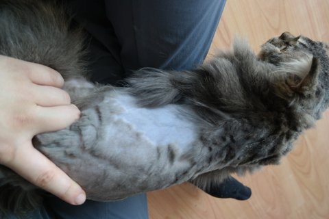 급히 뜨거운 물을 뒤집어 쓴 부위 털을 깎였습니다.