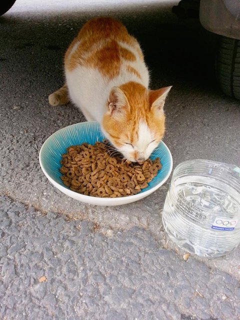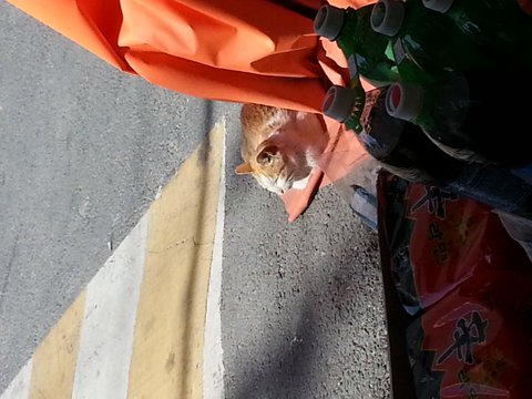 작은가게를운영하는 저는 창고에 고양이가 사는것을 보고 사료를 갖다놨엇드랬죠.이사진이 밥먹는거 첨 목격된 사진ㅋㅋ 처음이라 그런지 경계가심하네요ㅋ