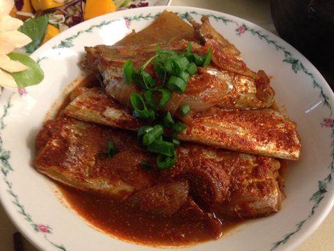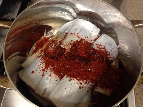 갈치조림 고추가루, 간장, 물엿, 양파즙, 다진 마늘 넣고 강불에 끓이다가