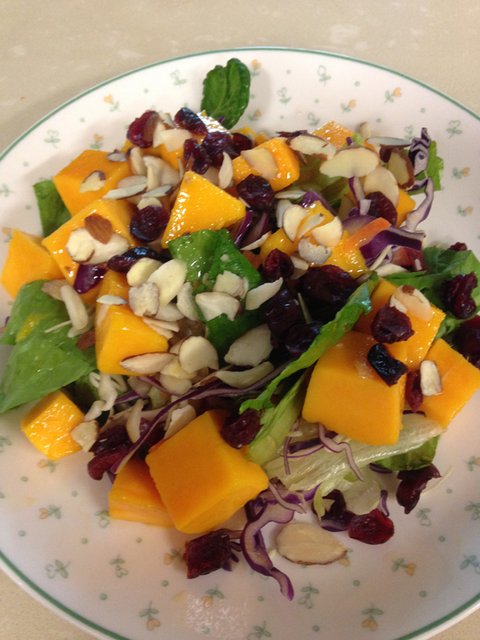 망고 크렌베리 아몬드 샐러드.