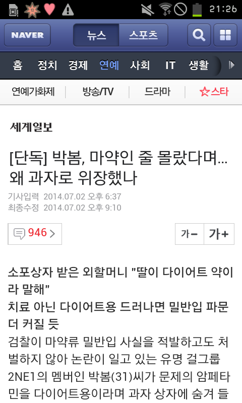 와이지가 감성팔이하니까 세계일보가 빡쳐서 또 기사 던졌는데 댓글이 천개를 향해 달려가고 있는데 메인에 안갘ㅋㅋㅋㅋㅋㅋㅋㅋㅋㅋㅋㅋㅋㅋㅋㅋㅋㅌ 명불허전 오이지