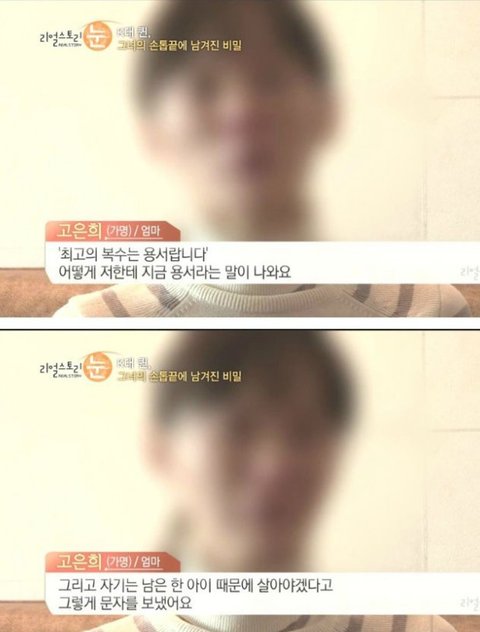 최고의 복수는 용서래... 그게 피의자 부모가 할 소린가?? 저런 놈을 낳고 키운 부모답다. 그 부모에 그 자식이구나