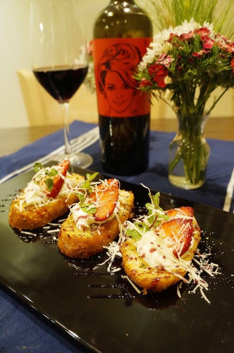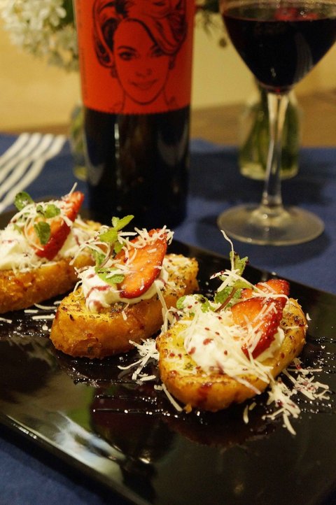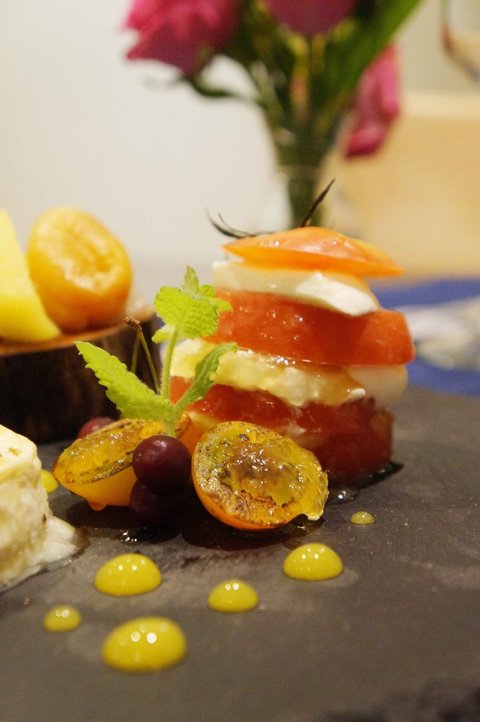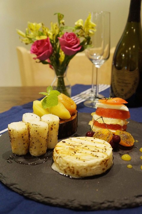 사과쨈을 곁들인 모짜렐라 카프레제와 화이트와인에 졸인 사과와 배