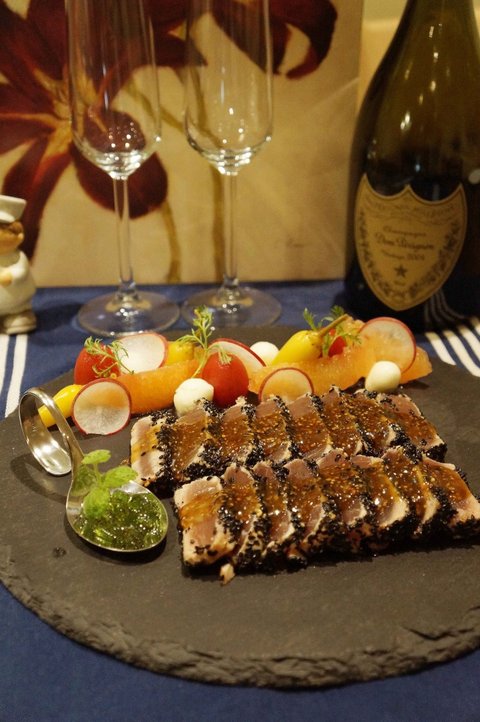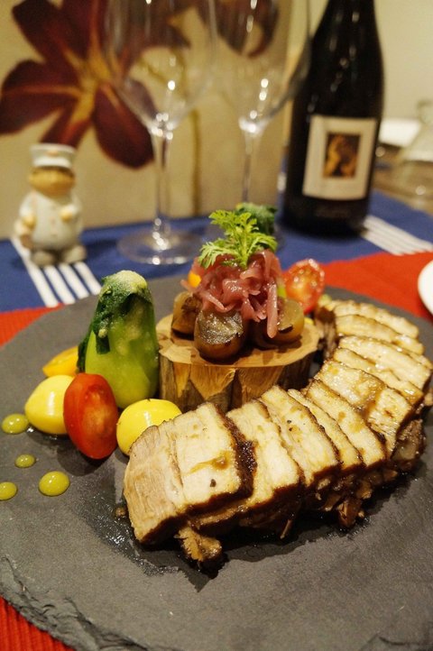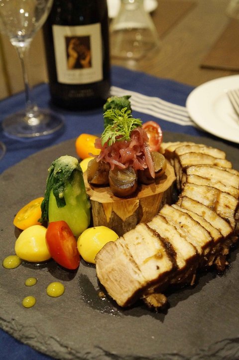 로즈마리와 타임을 넣고 졸인 단밤, 한라봉 소스를 곁들인 청경채를 곁들였어요.