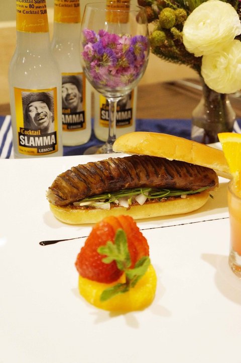 소세지와 고구마, 구운 바게트를 곁들였어요.