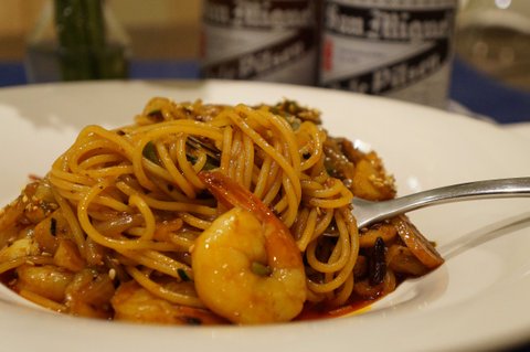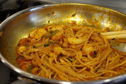 부트졸로키아 고추 2개와 불닭볶음면 액상스프 넣은 파스타 입니다.