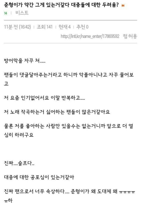 팬들에 대해 불안해하는 한 멤버의 일화?그런거 같아요.