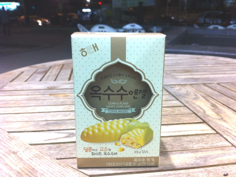 옥수수엔젤 초콜릿의 상자에 나와있는 옥수수엔젤의 이미지~